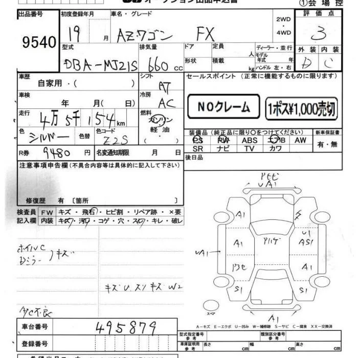 Mazda AZ WAGON с аукциона Японии JU Chiba лот № 9540