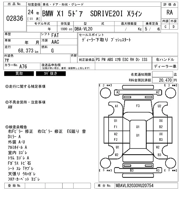 BMW X1 с аукциона Японии ARAI Bayside лот № 2836