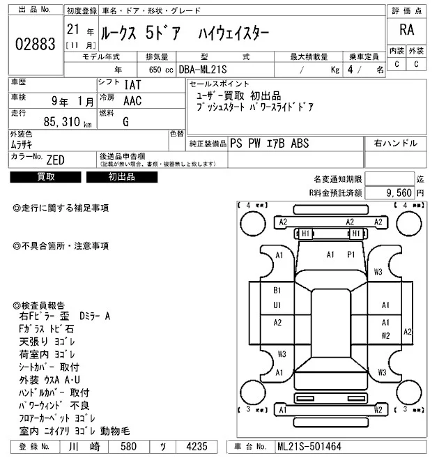 Nissan ROOX с аукциона Японии ARAI Bayside лот № 2883