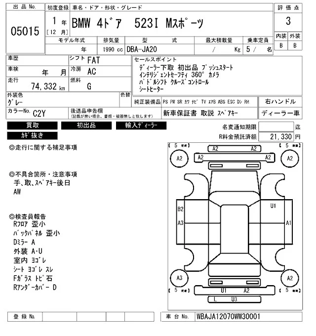 BMW 5-Series с аукциона Японии ARAI Bayside лот № 5015