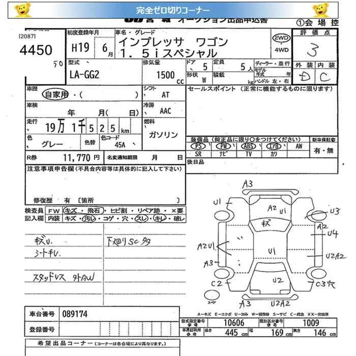 Subaru IMPREZA с аукциона Японии JU Miyagi лот № 4450