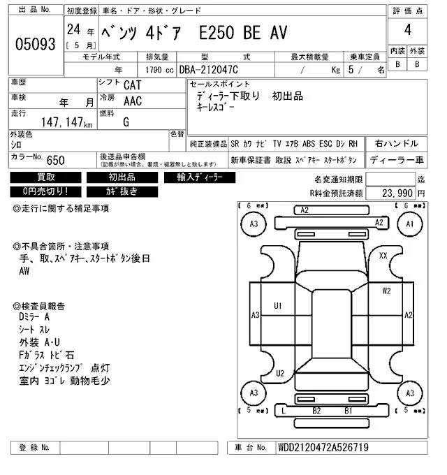 Mercedes-Benz E CLASS с аукциона Японии ARAI Bayside лот № 5093