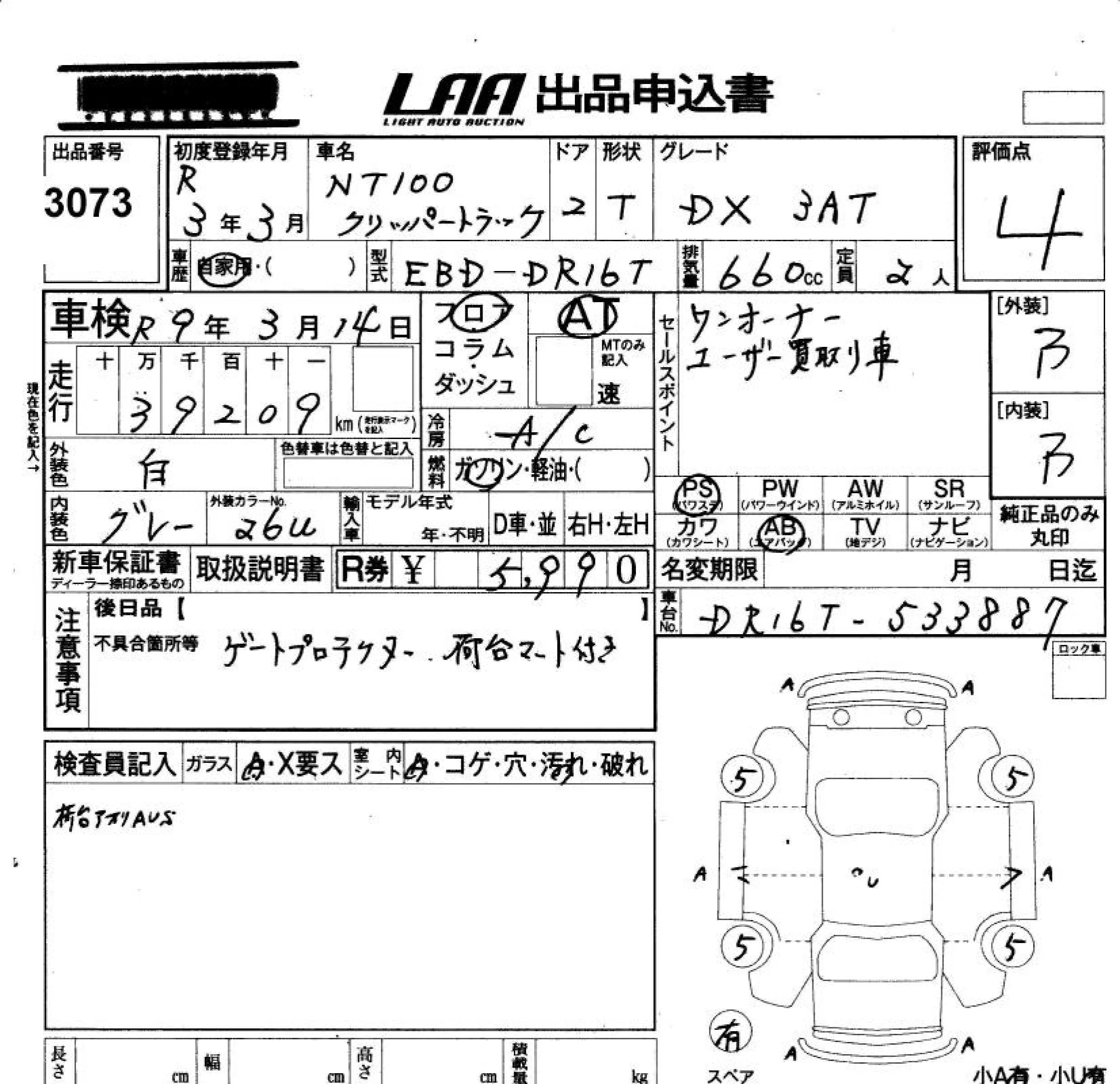 Nissan CLIPPER TRUCK с аукциона Японии LAA Okayama лот № 3073