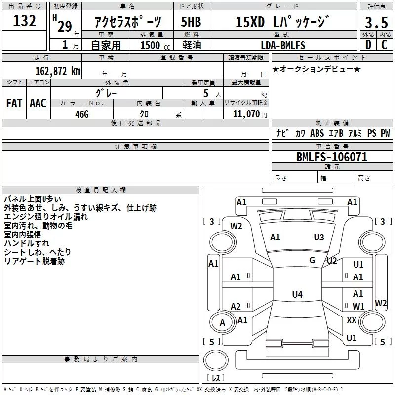 Mazda AXELA с аукциона Японии TAA Hyogo лот № 132