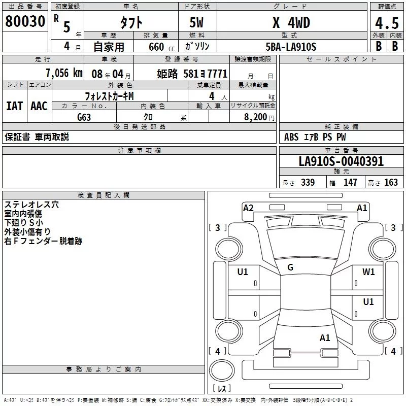 Daihatsu TAFT с аукциона Японии TAA Hyogo лот № 80030