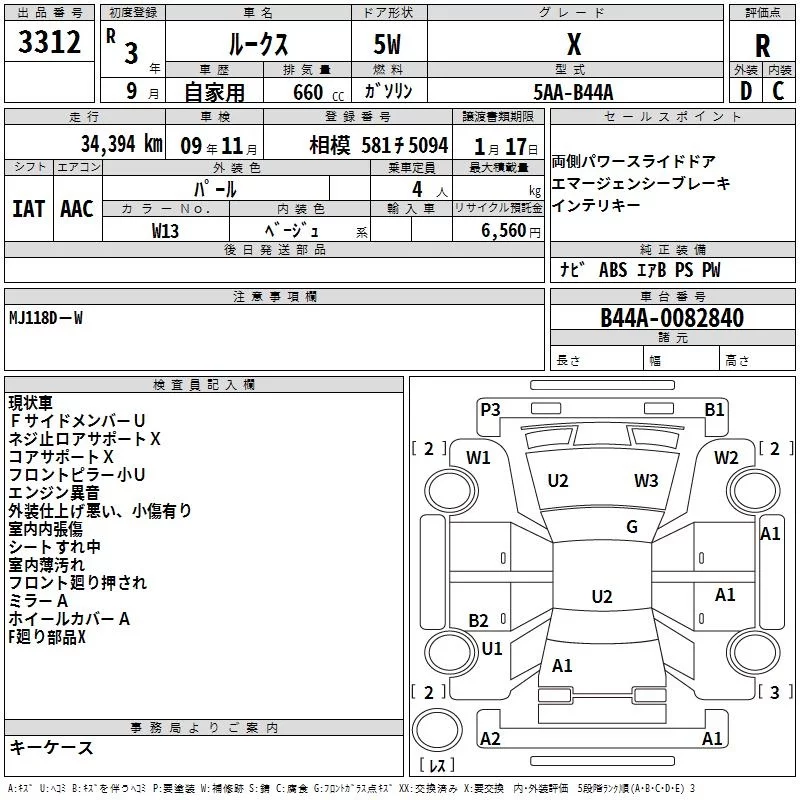 Nissan ROOX с аукциона Японии TAA Yokohama лот № 3312