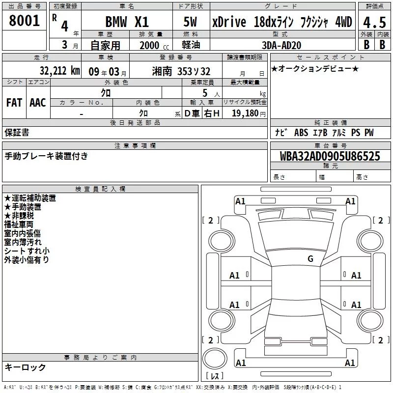 BMW X1 с аукциона Японии TAA Yokohama лот № 8001