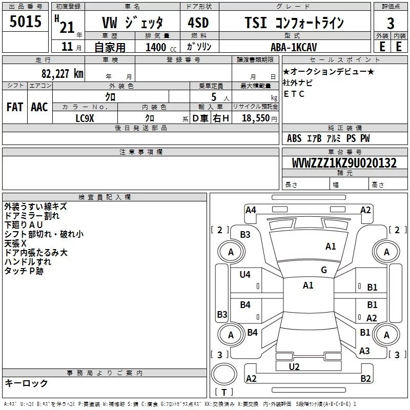 Volkswagen JETTA с аукциона Японии TAA Hyogo лот № 5015