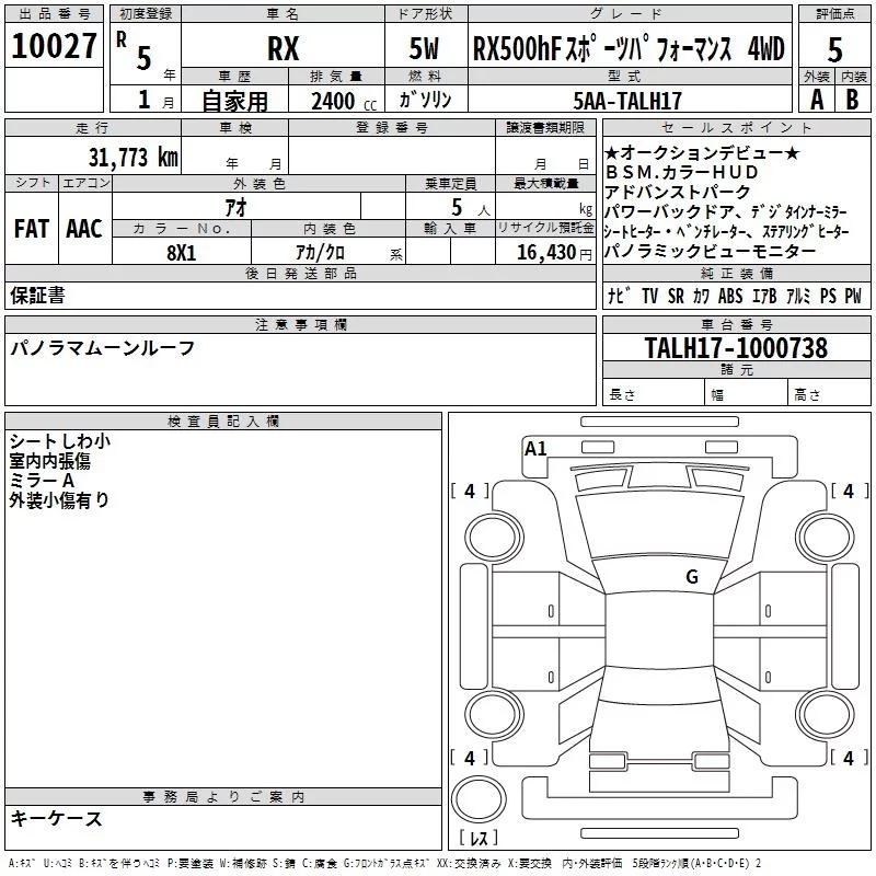 Lexus RX с аукциона Японии TAA Yokohama лот № 10027
