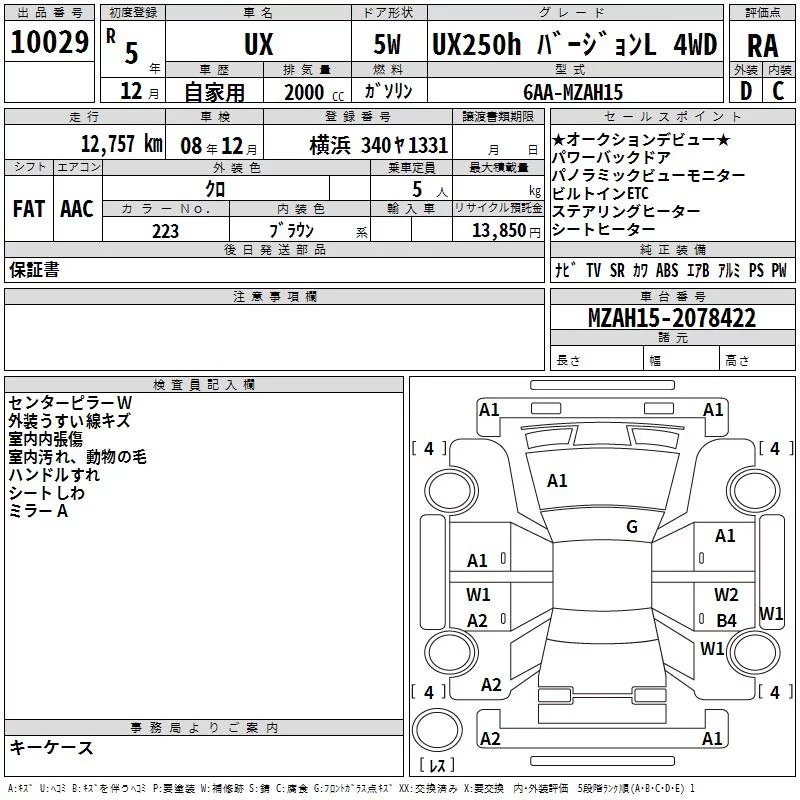 Lexus UX с аукциона Японии TAA Yokohama лот № 10029