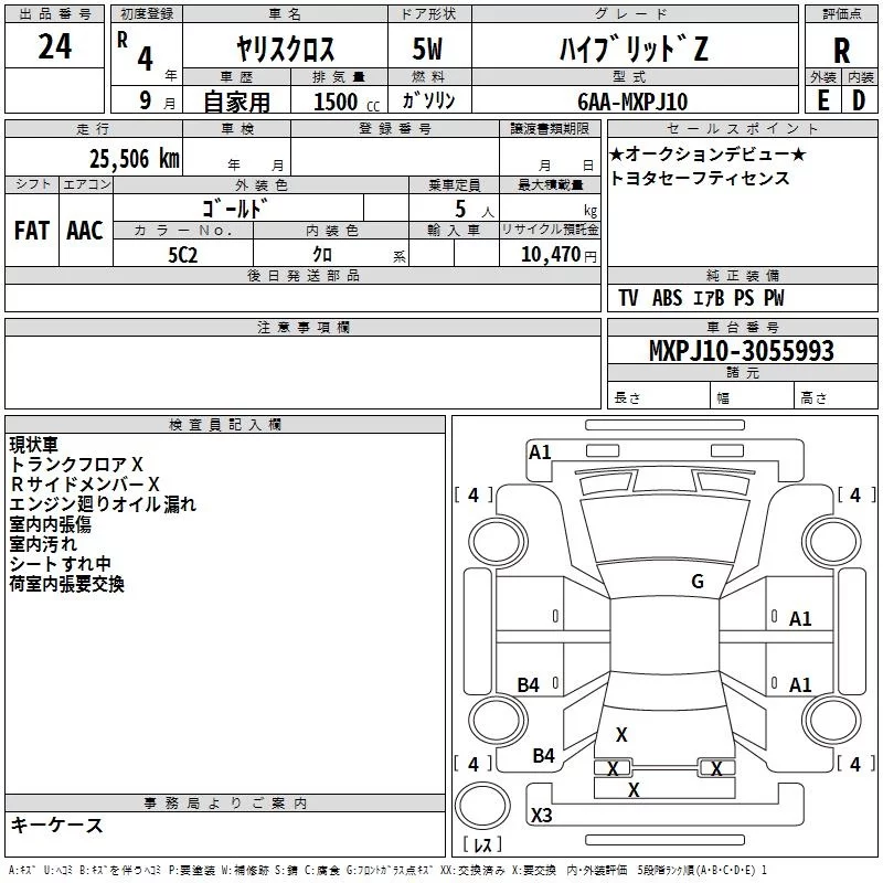 Toyota YARIS CROSS с аукциона Японии TAA Yokohama лот № 24