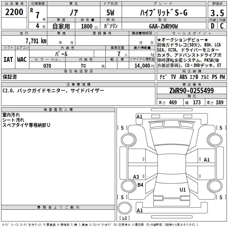 Toyota NOAH с аукциона Японии TAA Hyogo лот № 2200