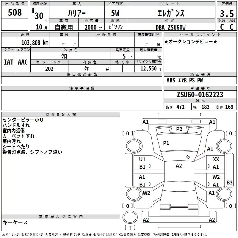 Toyota HARRIER с аукциона Японии TAA Yokohama лот № 508