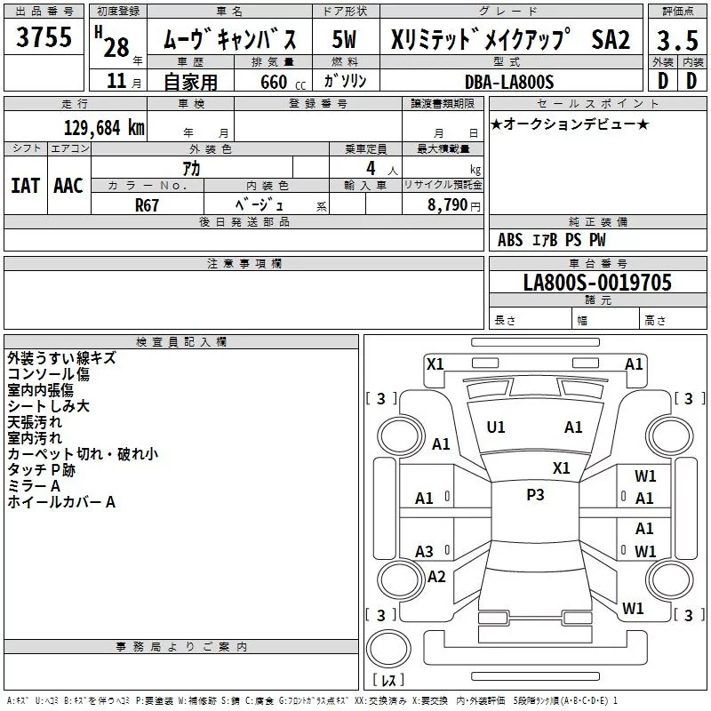 Daihatsu MOVE CANBUS с аукциона Японии TAA Kyushu лот № 3755