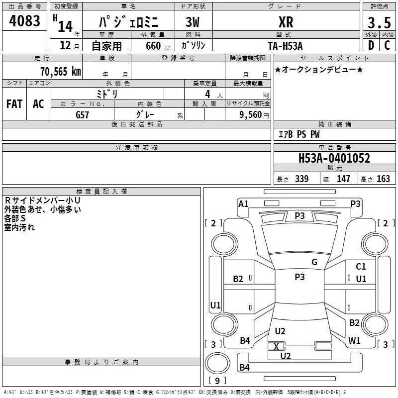 Mitsubishi PAJERO MINI с аукциона Японии TAA Shikoku лот № 4083