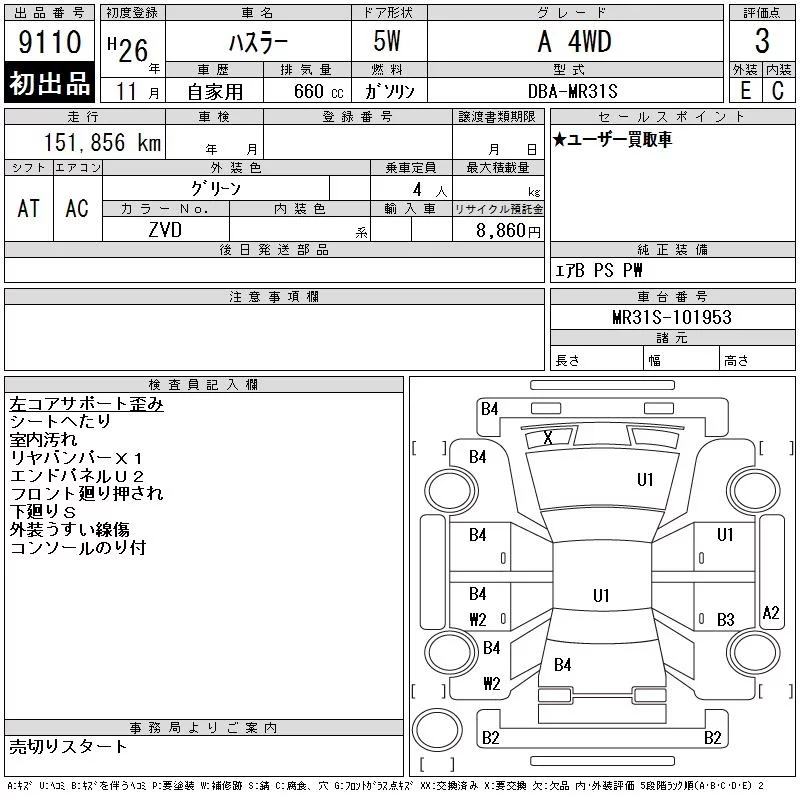 Suzuki HUSTLER с аукциона Японии CAA Chubu лот № 9110