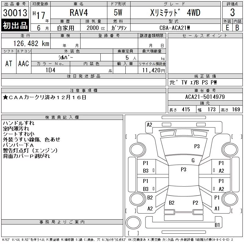 Toyota RAV4 с аукциона Японии CAA Chubu лот № 30013
