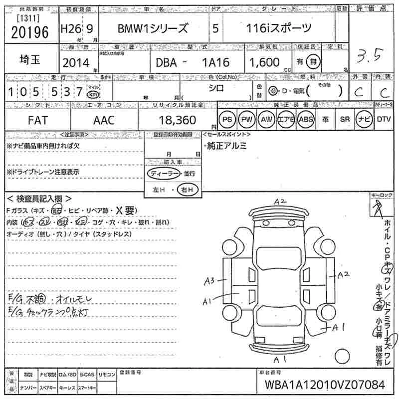 BMW 1-Series с аукциона Японии MIRIVE Saitama лот № 20196