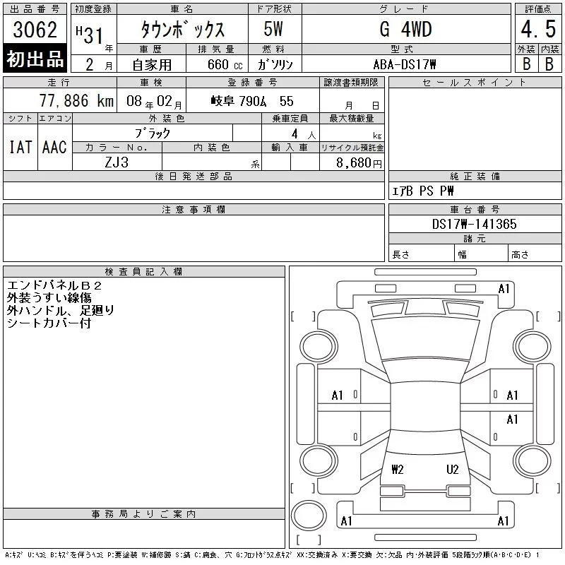 Mitsubishi TOWNBOX с аукциона Японии CAA Chubu лот № 3062