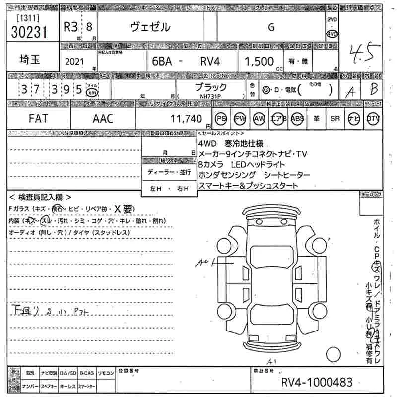 Honda VEZEL с аукциона Японии MIRIVE Saitama лот № 30231