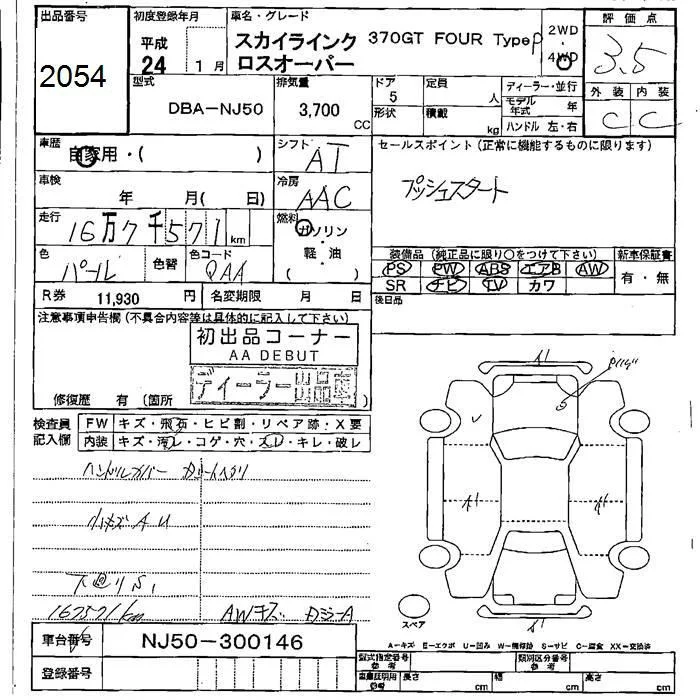 Nissan SKYLINE CROSSOVER с аукциона Японии JU Fukushima лот № 2054