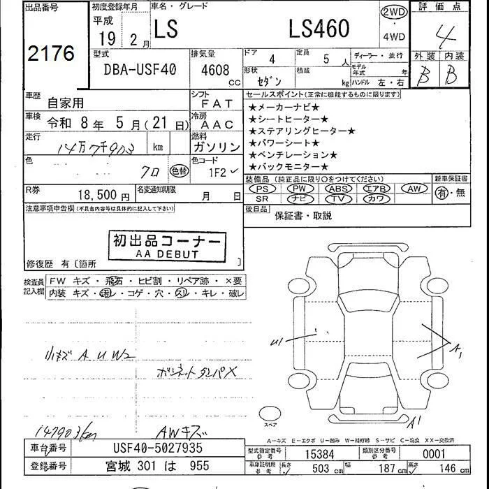 Lexus LS с аукциона Японии JU Fukushima лот № 2176
