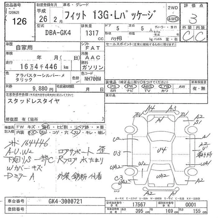 Honda FIT с аукциона Японии JU Niigata лот № 126