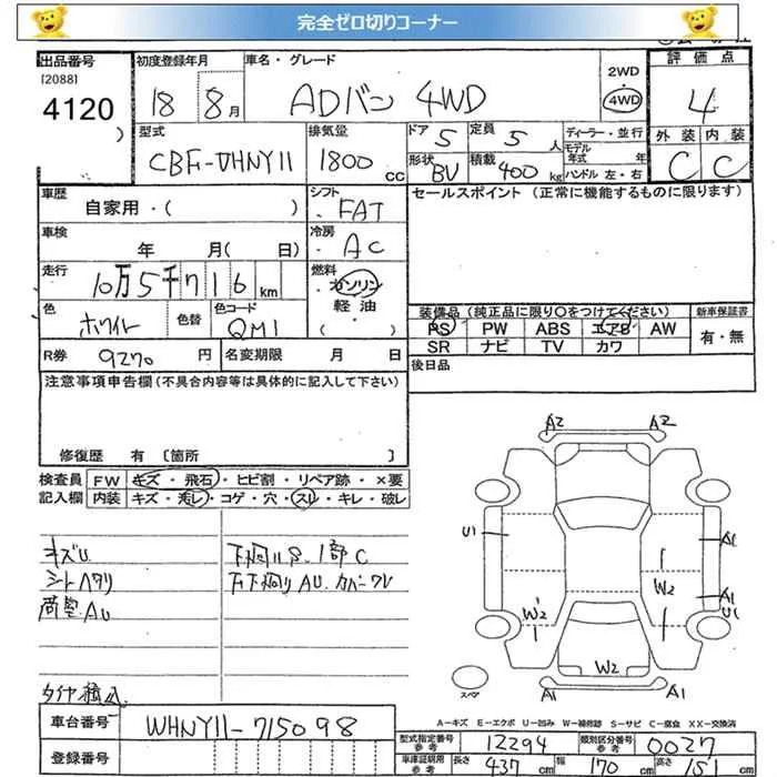 Nissan AD с аукциона Японии JU Miyagi лот № 4120