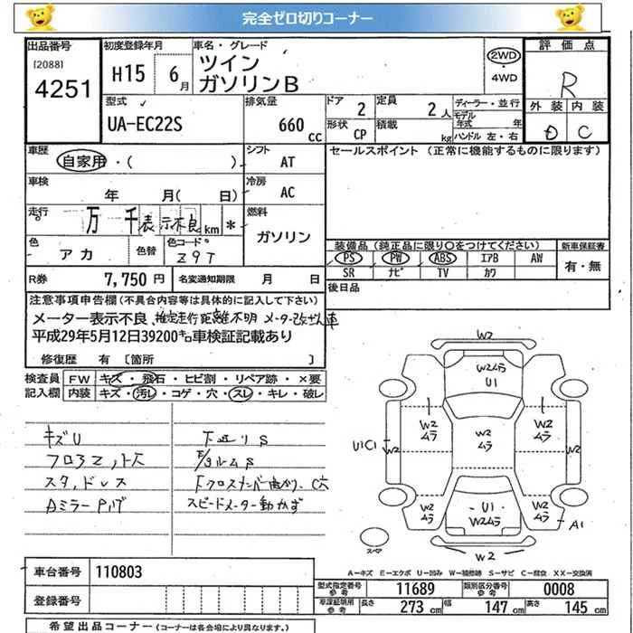 Suzuki TWIN с аукциона Японии JU Miyagi лот № 4251