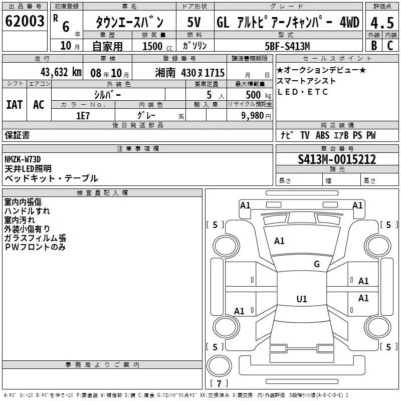 Toyota TOWN ACE VAN с аукциона Японии TAA Yokohama лот № 62003