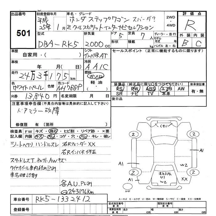 Honda STEP WAGON с аукциона Японии JU Shizuoka лот № 501