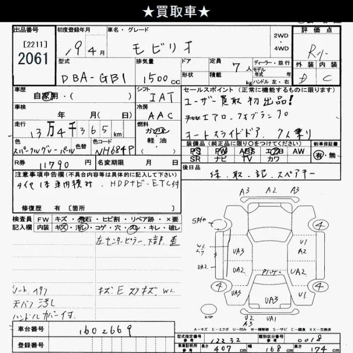 Honda MOBILIO с аукциона Японии JU Saitama лот № 2061