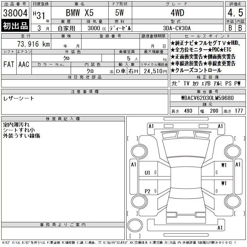BMW X5 SERIES с аукциона Японии CAA Chubu лот № 38004