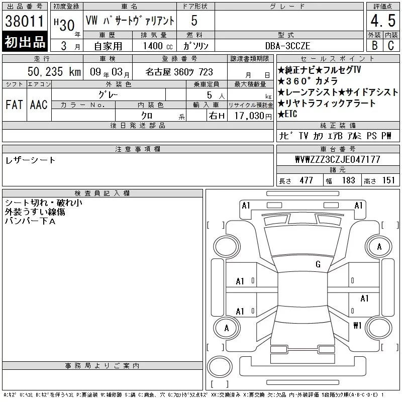 Volkswagen PASSAT VARIANT с аукциона Японии CAA Chubu лот № 38011