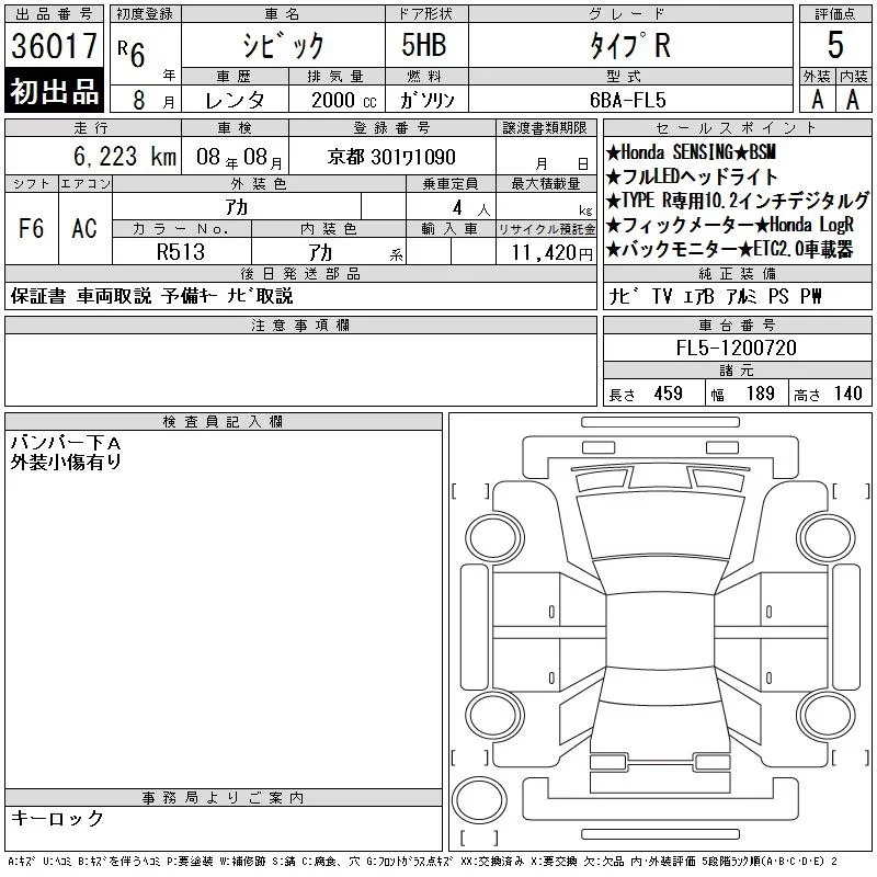 Honda CIVIC с аукциона Японии CAA Chubu лот № 36017