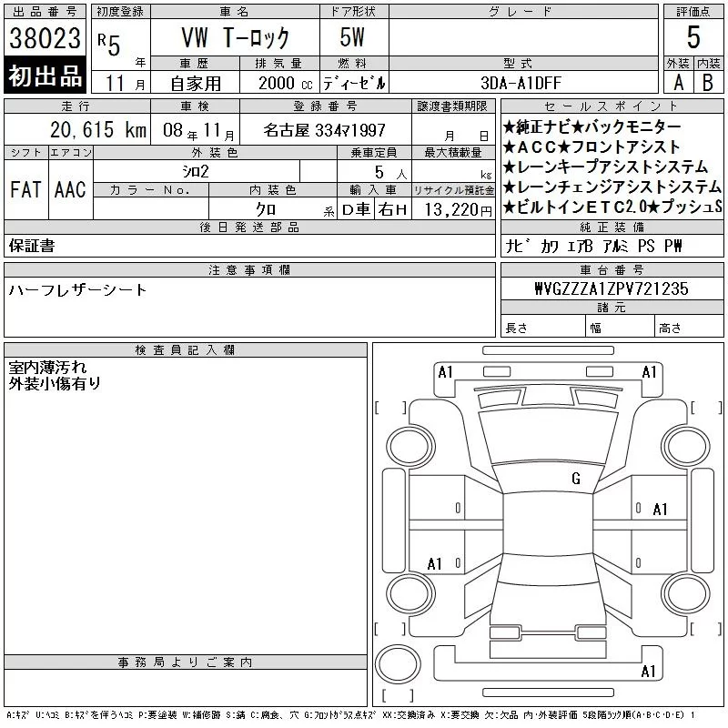 Volkswagen T-ROC с аукциона Японии CAA Chubu лот № 38023