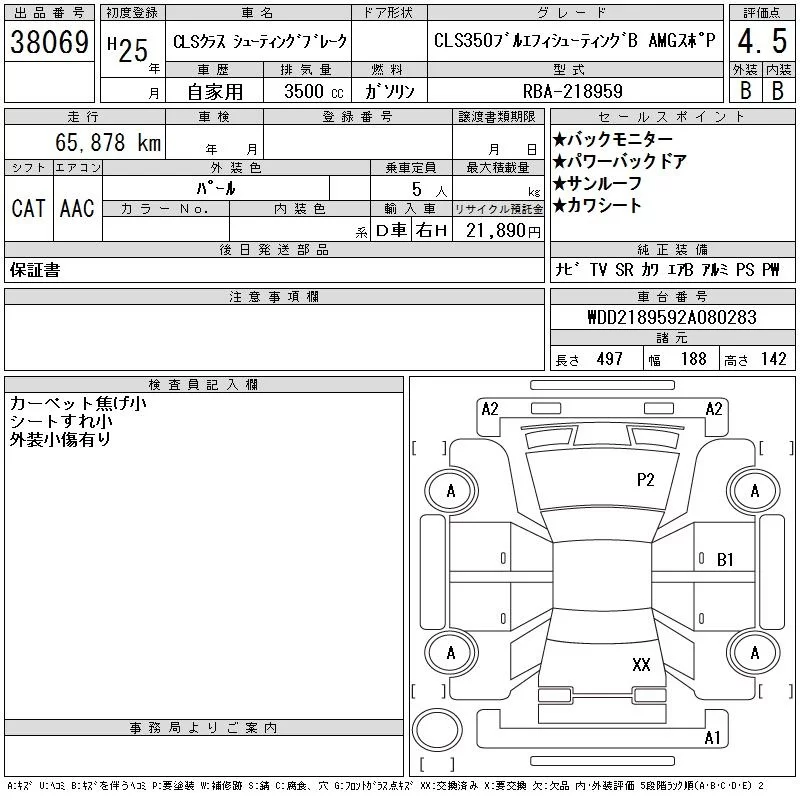 Mercedes-Benz CLS с аукциона Японии CAA Chubu лот № 38069