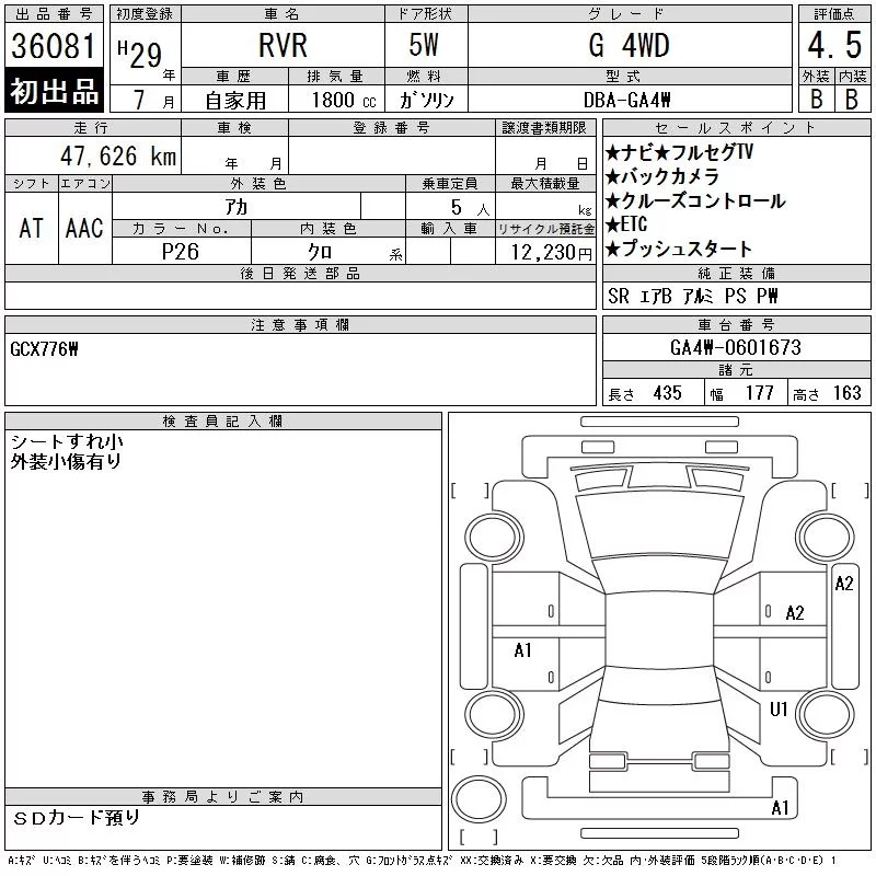 Mitsubishi RVR с аукциона Японии CAA Chubu лот № 36081