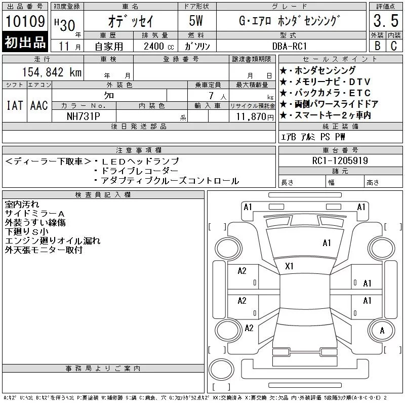 Honda ODYSSEY с аукциона Японии CAA Chubu лот № 10109