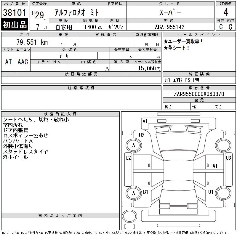Alfa Romeo MiTo с аукциона Японии CAA Chubu лот № 38101