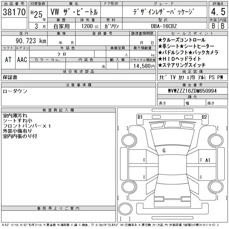 Volkswagen THE BEETLE с аукциона Японии CAA Chubu лот № 38170