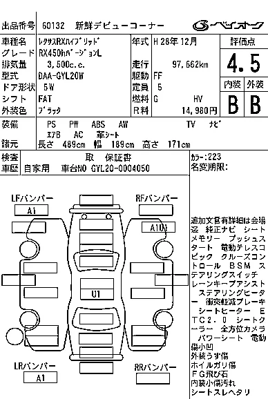 Lexus RX с аукциона Японии BAYAUC лот № 60132