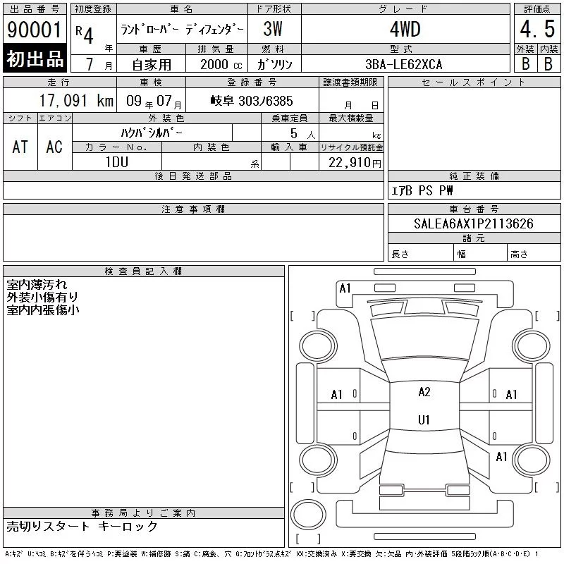 Rover DEFENDER с аукциона Японии CAA Chubu лот № 90001