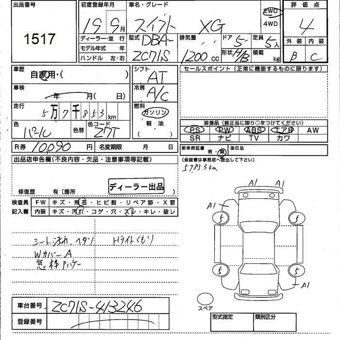 Suzuki SWIFT с аукциона Японии JU Kumamoto лот № 1517