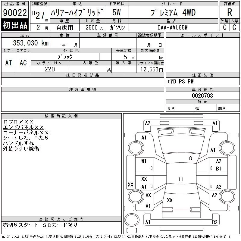 Toyota HARRIER с аукциона Японии CAA Chubu лот № 90022