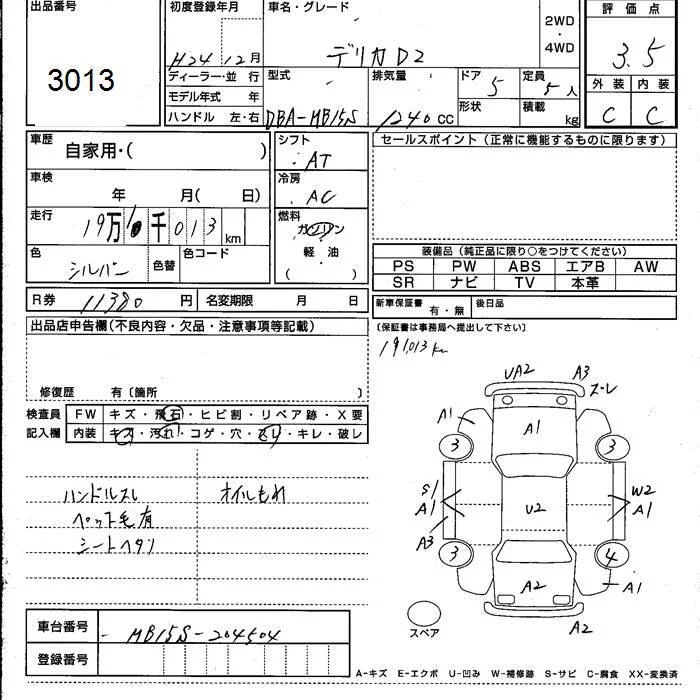 Mitsubishi DELICA D2 с аукциона Японии JU Kumamoto лот № 3013