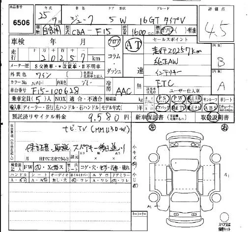 Nissan JUKE с аукциона Японии IAA Osaka лот № 6506