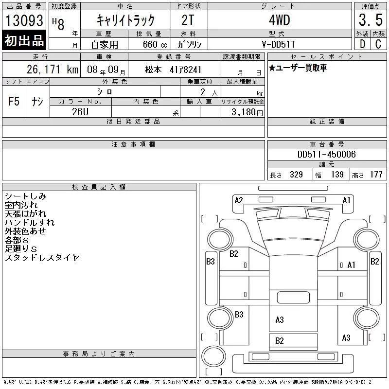 Suzuki CARRY TRUCK с аукциона Японии CAA Chubu лот № 13093
