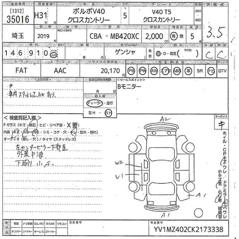 Volvo V40 с аукциона Японии MIRIVE Saitama лот № 35016