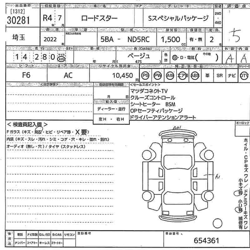 Mazda ROADSTER с аукциона Японии MIRIVE Saitama лот № 30281